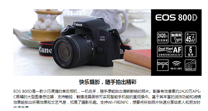 參數(shù) [品牌] 佳能(Canon) [型號(hào)] EOS 800D [商品毛重] 1.32kg